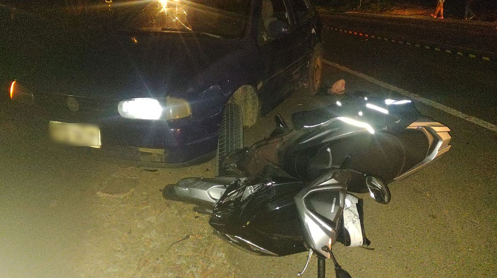 Na noite da última terça-feira (30/04), houve o registro de um acidente envolvendo um carro e uma moto, na Rodovia Francisco de Almeida, na altura do KM 5+600.